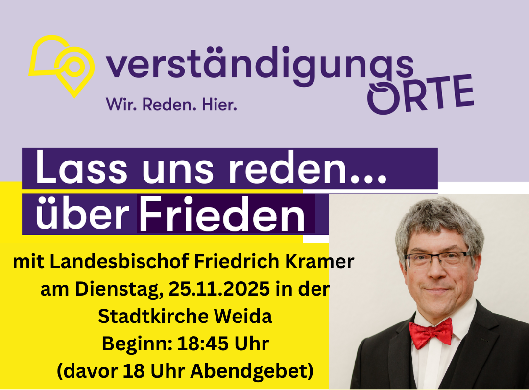 25.11.2025, Stadtkirche Weida, 18:00 Uhr, Abendgebet mit Landesbischof Friedrich Kramer anschließend Diskussion
