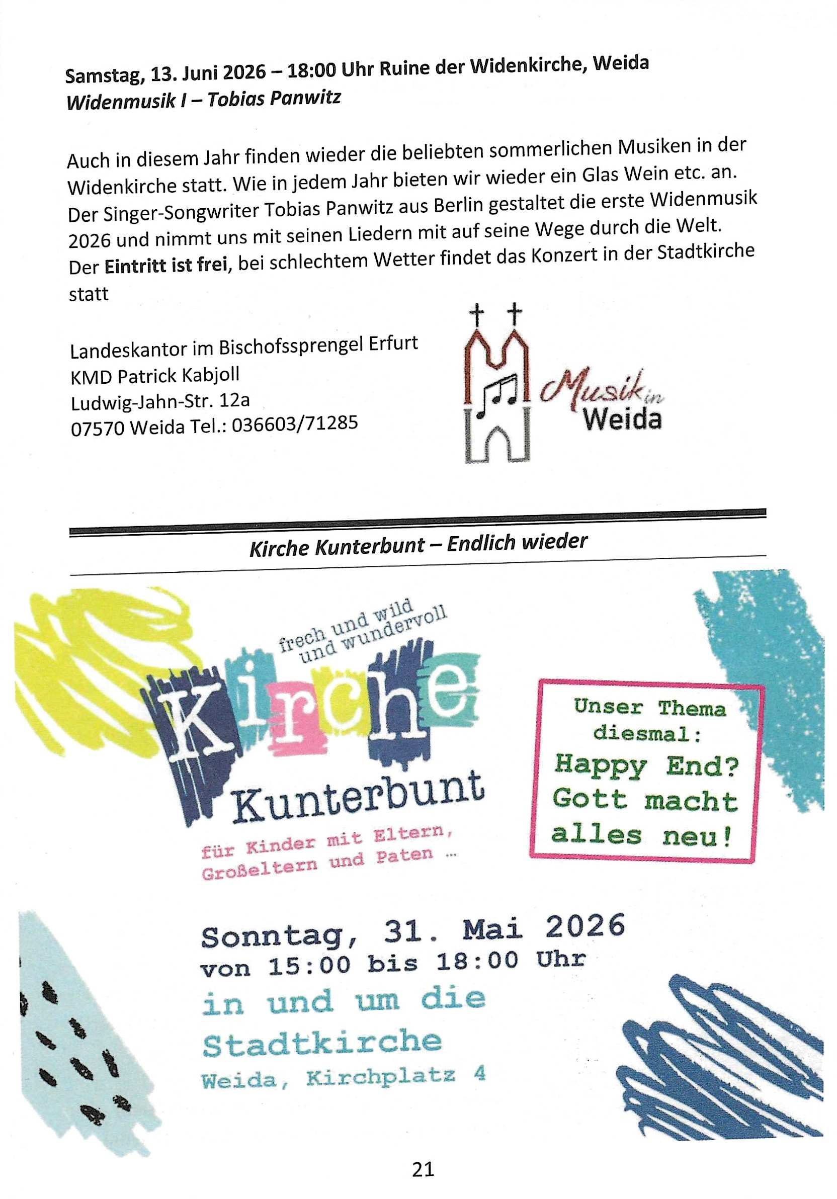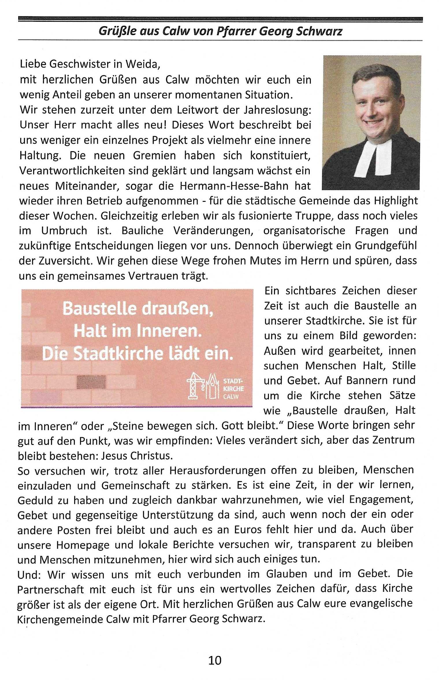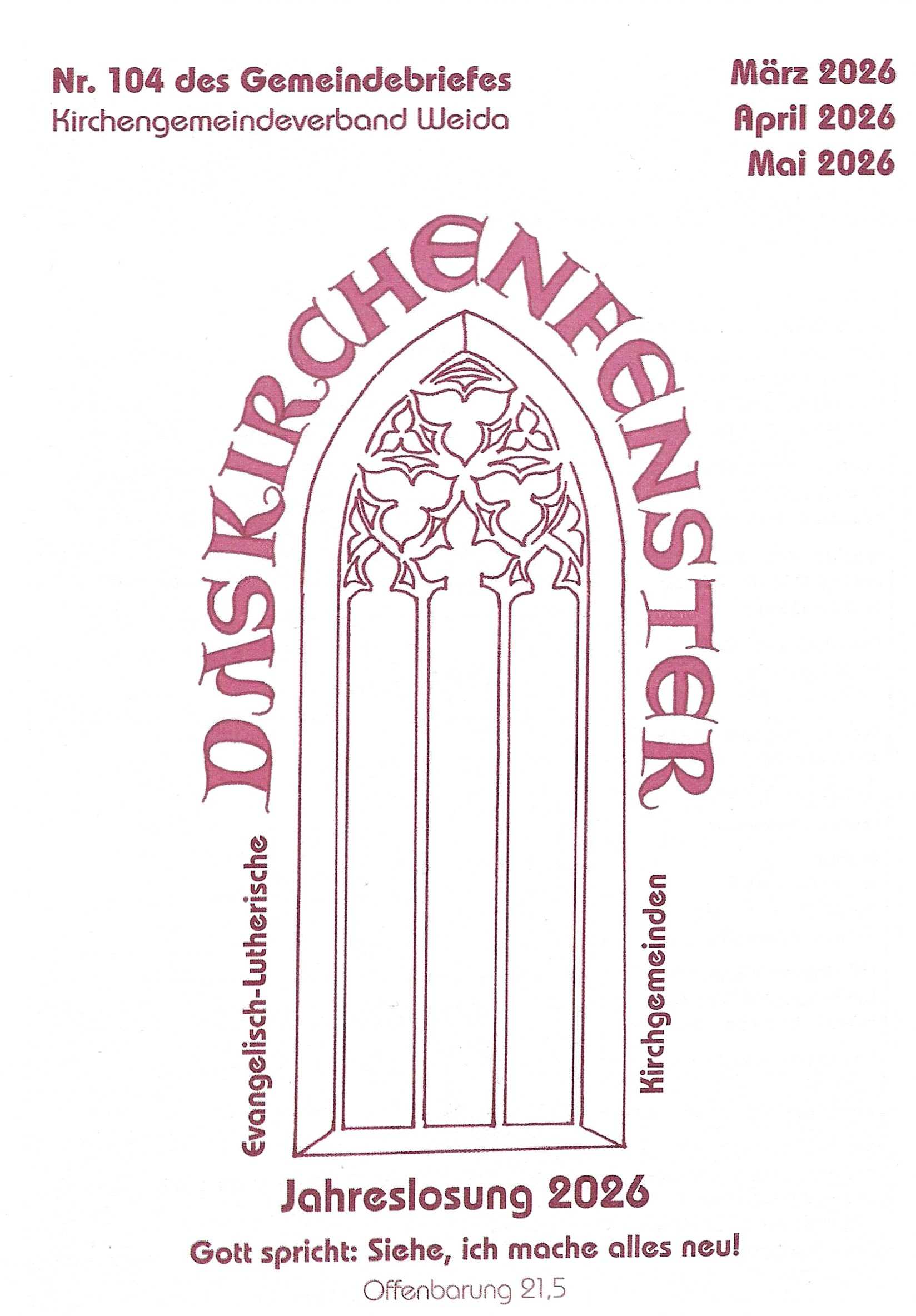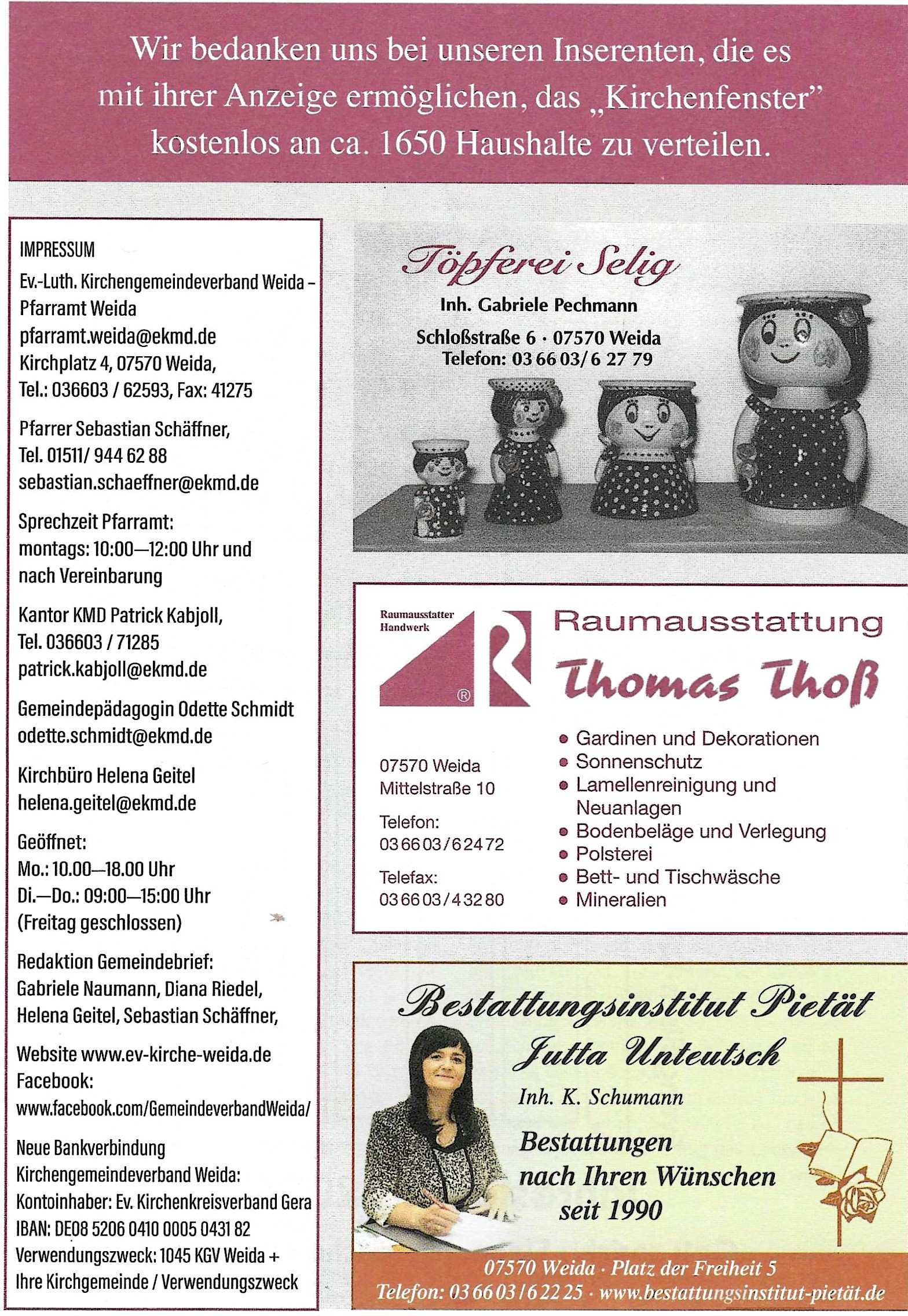 Drucken E-Mail Das Kirchenfenster (Evangelisch-Lutherische Kirchgemeinden im Kirchspiel Weida Kirchenfenster 103 Gemeindebrief Nr. 101 Gemeindebrief Nr. 100 Weiter